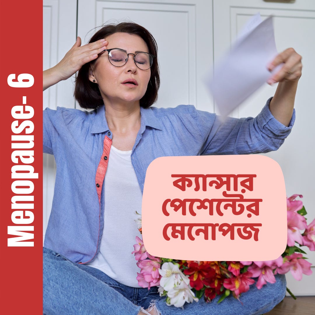 প্রাকৃতিক মেনোপজের থেকে ক্যান্সার ঘটিত বা ক্যান্সার ট্রিটমেন্ট ঘটিত মেনোপজে কতখানি পার্থক্য হয় বা তার ট্রিটমেন্টটি বা কি কতখানি আলাদা রাস্তায় চলে তার জন্য আজকে কিছু কথা।