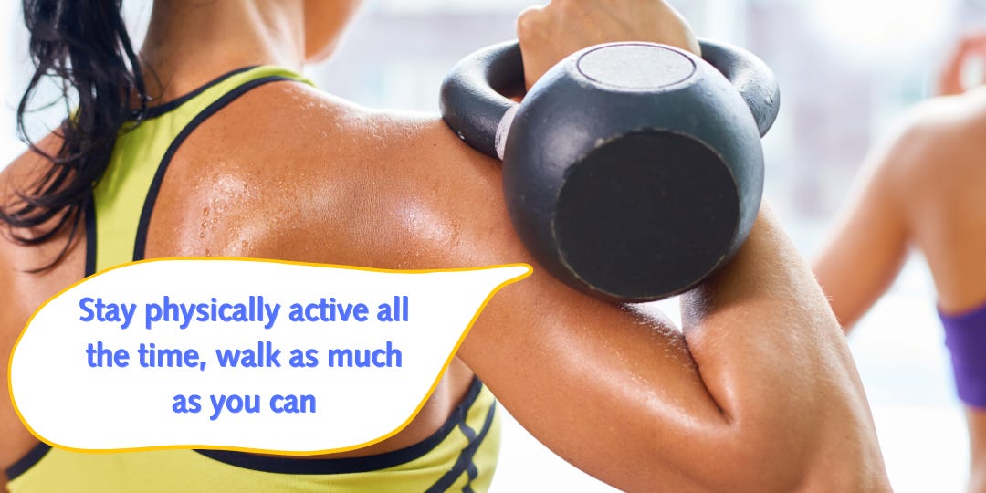 👉🏾 Stay physically active all the time, walk as much as you can.