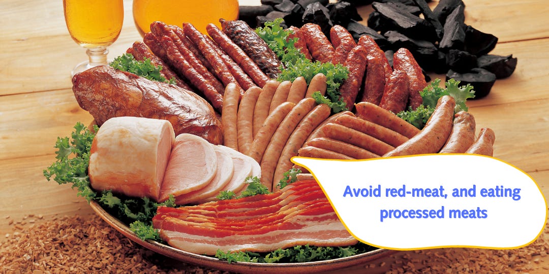 🙅🏽♀️ Avoid red-meat, and eating processed meats