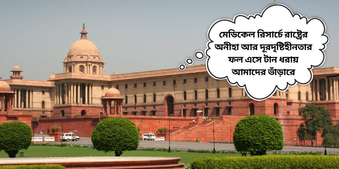 সুচতুর ভাবে, তিলে তিলে আমাদের প্রতিভা এবং দেশের ভবিষ্যৎ নষ্ট করে দেওয়া হচ্ছে। তারপর মাথায় আকাশ ভেঙে পড়লে, পেট্রল ডিজেলের দাম বাড়িয়ে তহবিল জোগাড় করে বিদেশী প্রযুক্তি ব্যবহার করে তৈরী হওয়া টিকা গাঁটের কড়ি খরচা করে কিনে আনতে হবে। আর নাভিশ্বাস উঠবে সাধারণ মানুষের। কারণ, সেই পেট্রল পুড়িয়েই দোকানে বাড়িতে আসে সর্ষের তেল আর মুসুর ডাল। মেডিকেল রিসার্চে রাষ্ট্রের অনীহা আর দূরদৃষ্টিহীনতার ফল এসে টান ধরায় আমাদের ভাঁড়ারে। মধ্যবিত্তের পকেটে।