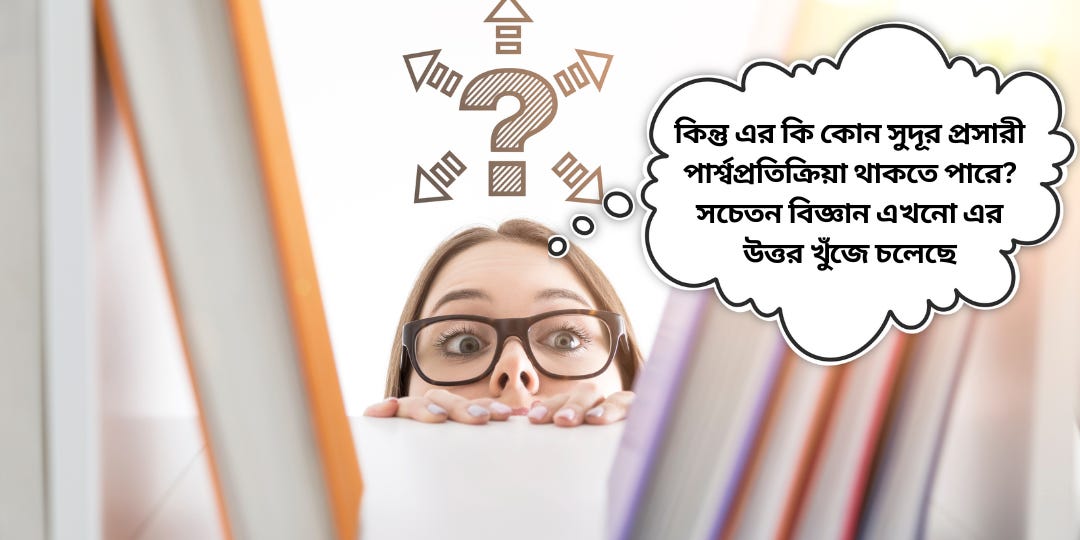 টিকার এখনো অনেক পথ পেরোনো বাকি। গুরুতর পার্শ্বপ্রতিক্রিয়া ছাড়া কিভাবে ভ্যাকসিন দেওয়া যেতে পারে তা এখনো বিজ্ঞান পুরোপুরি আয়ত্তে আনতে পারেনি। যে কোন টিকা দেওয়া হলে এখনো দশকের পর দশক গবেষণা চলে যে, সেই টিকা অদূর ভবিষ্যৎ এবং সুদূর ভবিষ্যতে মানুষকে প্রতিকূল ভাবে প্রভাবিত করছে কিনা। অনেক টিকাতে মৃত্যু হতে পারে। হতে পারে বিবিধ নার্ভের অসুখ সহ গুলেন বারী (Guillain-Barre syndrome) বলে এক ধরনের পঙ্গুত্ব। কিন্তু মোটের উপরে এই ধরনের পার্শ্ব প্রতিক্রিয়ার হার, যে অসুখের জন্য টিকা, সেই অসুখের থেকে মৃত্যুর সম্ভাবনা থেকে অনেক অনেক কম।