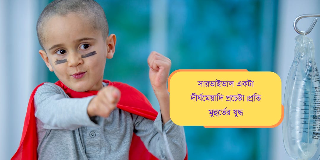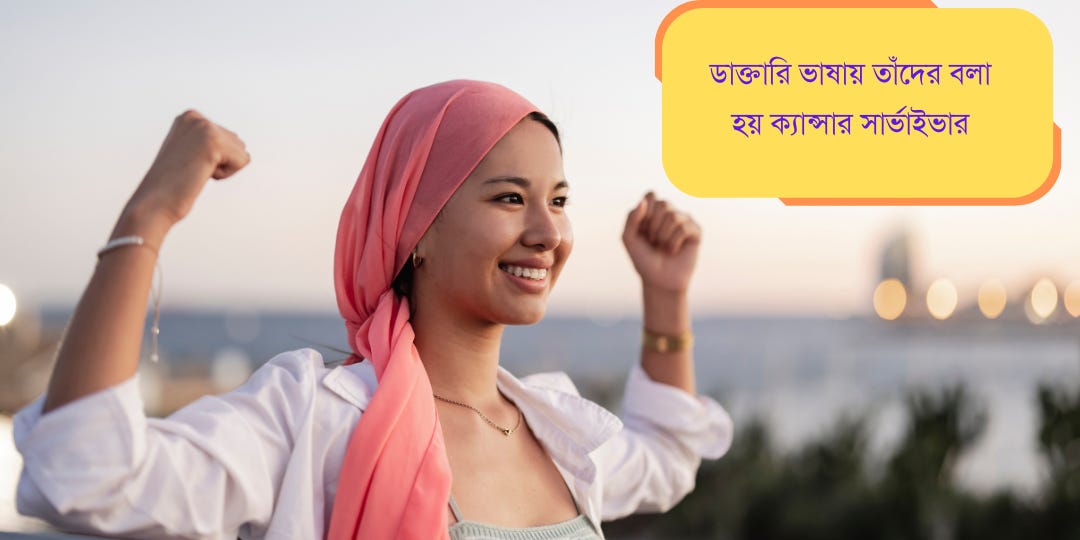আমাদের ক্যান্সার ওয়ারিয়র এর কাহিনী অনেকক্ষেত্রেই এরকম। ডাক্তারি ভাষায় তাঁদের বলা হয় ক্যান্সার সার্ভাইভার। শুধু ক্যান্সার আক্রান্তরাই নন , তাঁদের পরিবারের সদস্যরাও বৃহত্তর অর্থে সার্ভাইভার। এবছর জুনের সাত তারিখ ক্যান্সার সার্ভাইভার ডে।