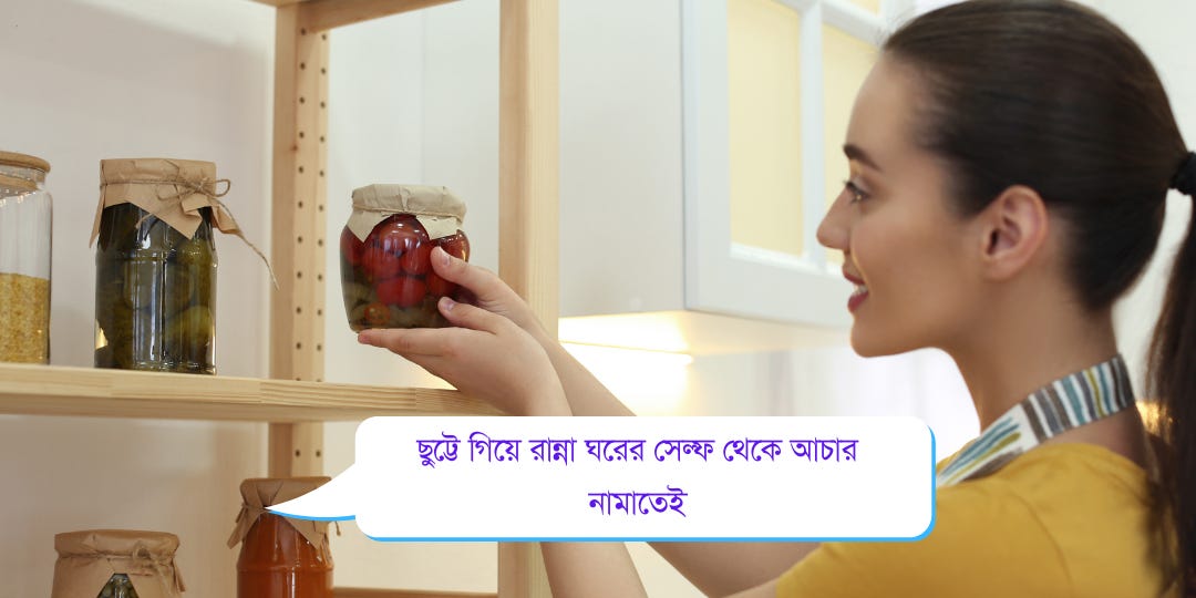 ছুট্টে গিয়ে রান্না ঘরের সেল্ফ থেকে আচার নামাতেই
