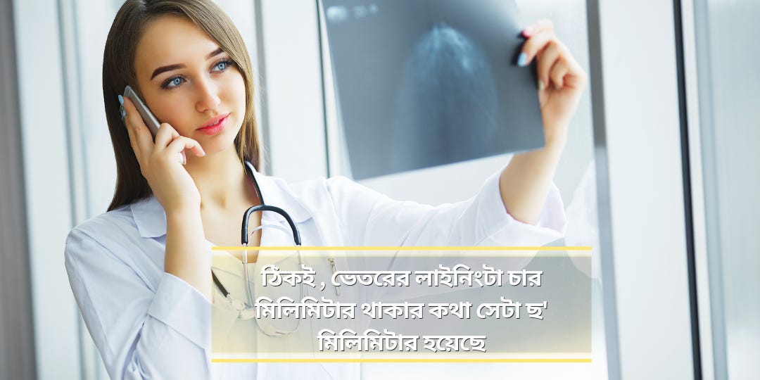 আগে ৫ মিলিমিটার পর্যন্ত নরমাল ছিল, কিছু বছর হলো সেটাকে কমিয়ে চার মিলিমিটার করা হয়েছে। ইগনোর করবেন না। — আর শুনবো না ডাক্তার, গাড়ি দাঁড়িয়ে আছে নিচে।