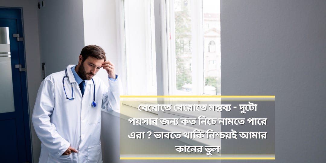 বেরোতে বেরোতে ওনাদের মন্তব্য - দুটো পয়সার জন্য কত নিচে নামতে পারে এরা ?