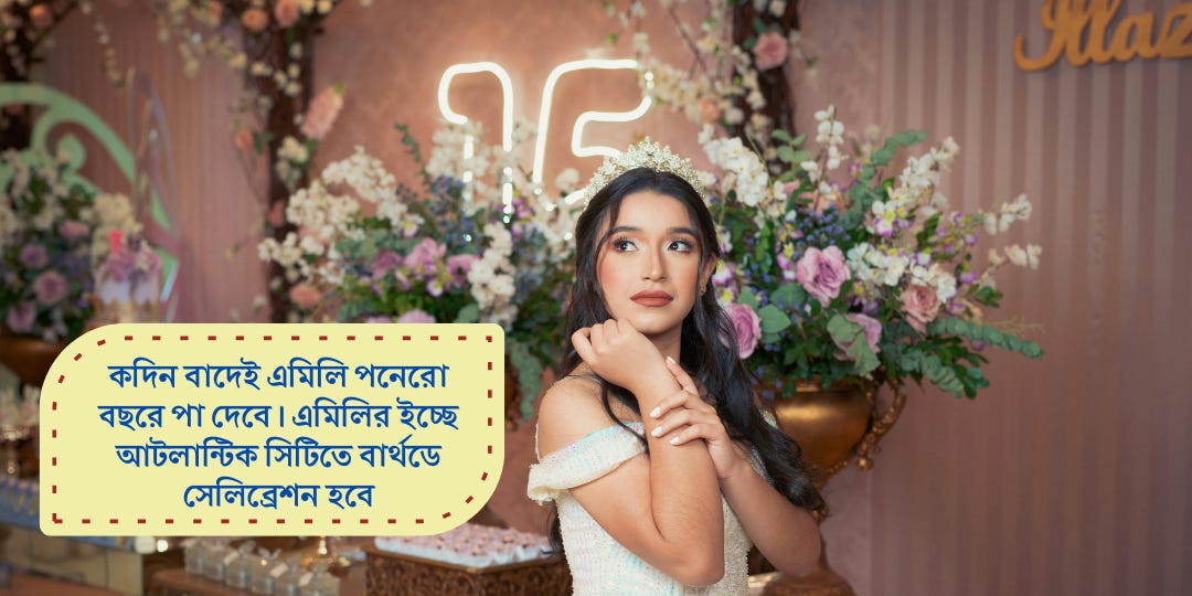 👉🏾 প্রথমে এমিলির ক্রিসমাস। ডিসেম্বর ২০২১- ক্রিসমাসের ঠিক এক সপ্তাহ আগে, কদিন বাদেই এমিলি পনেরো বছরে পা দেবে। এমিলির ইচ্ছে আটলান্টিক সিটিতে বার্থডে সেলিব্রেশন হবে। প্রস্তুতি চলছে পুরোদমে। এই বয়সে অন্য বাচ্চাদের মতোই এমিলিও শরীর চর্চার জন্য জিমে যায়।