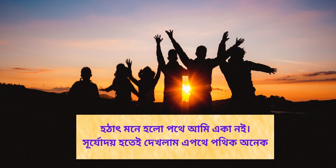হঠাৎ মনে হলো পথে আমি একা নই। রাতের আঁধারে ঢাকা ছিল অন্তর্দৃষ্টি। সূর্যোদয় হতেই দেখলাম এপথে পথিক অনেক।