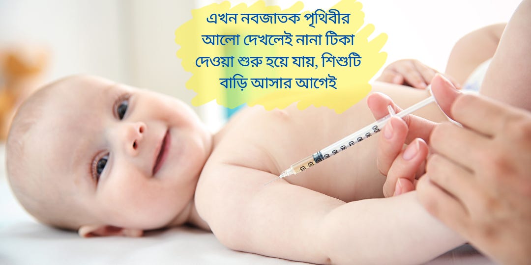 এখন নবজাতক পৃথিবীর আলো দেখলেই নানা টিকা দেওয়া শুরু হয়ে যায়, শিশুটি বাড়ি আসার আগেই। ধীরে ধীরে হারিয়ে দিচ্ছি ডিফথেরিয়া, হুপিং কফ পোলিওর মতো ক্ষতিকর অসুখকে।