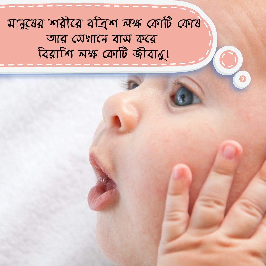 -মানুষের শরীরে বত্রিশ লক্ষ কোটি কোষ আছে। আর আমাদের শরীরে বিরাশি লক্ষ কোটি জীবাণু। ভাড়াটেই বেশি। আর বেশিরভাগ ভাড়াটে থাকে পেটের ভেতরে পটির রাস্তা, কোলনে। রেজিস্টান্ট জীবাণু থাকলে তাই তার বেশিরভাগটা মানুষের কোলনে আর চামড়ায় থাকে।