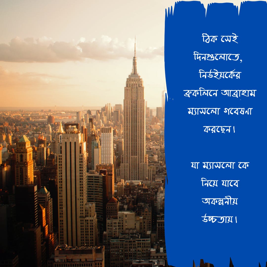 ঠিক সেই দিনগুলোতে, নিউইয়র্কের ব্রুকলিনে সাজানো গোছানো কলেজে আব্রাহাম ম্যাসলো গবেষণা করছেন।