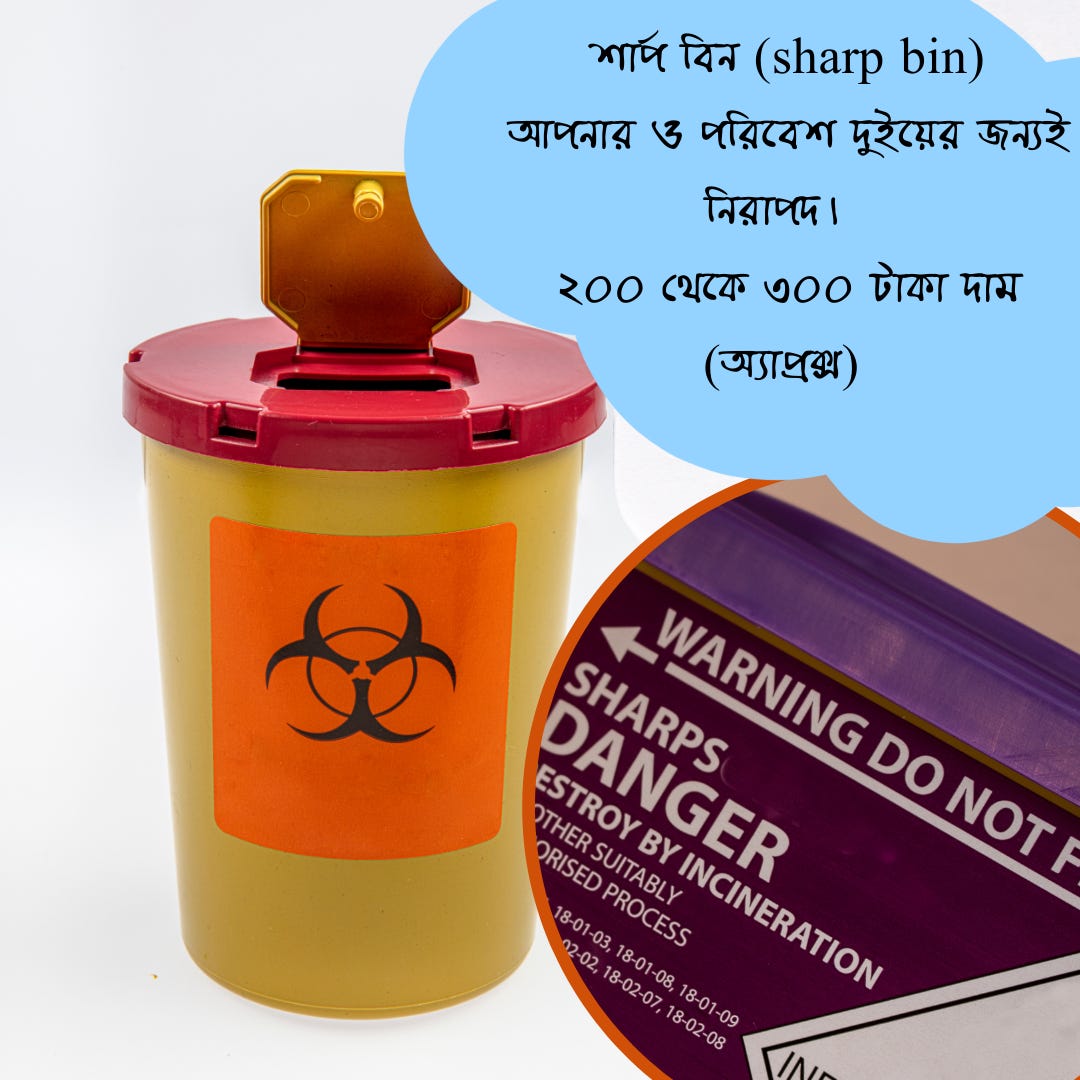 আপনার শার্প বিন যখন ভরে আসবে তখন আপনি এটিকে সার্জারীর হসপিটালে দিয়ে আসতে পারেন তারা এটি সঠিক জায়গায় ডিসপোজ করে দেবে।