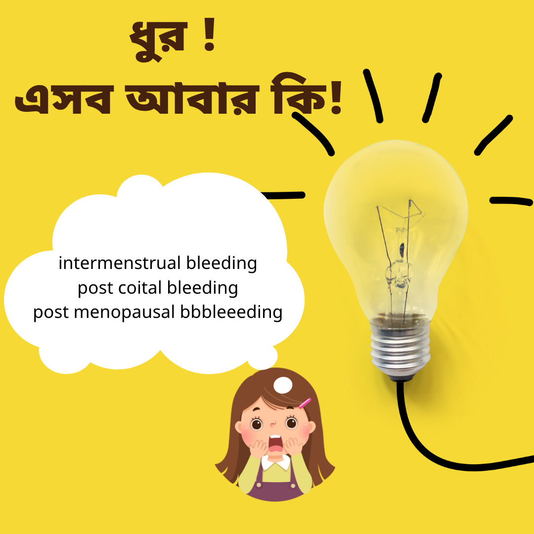 ➤ দুটো পিরিয়ডের মধ্যে ব্লিডিং কে বলে ইন্টার মেনস্ট্রুয়াল ব্লিডিং (দু’টো পিরিয়ডের মাঝে হঠাৎ ছিঁটে ফোঁটা ব্লিডিং দেখা)।