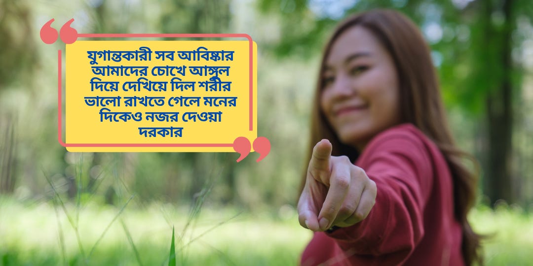 👉🏽 বহুদিন ধরেই ডাক্তাররা মানুষকে ভুল চিকিৎসা করে এসেছেন এই ভেবে যে শরীর আর মন আলাদা। শেষে হোঁচট খেতে খেতে আরো কয়েকশো বছর পরে পর্তুগিজ নিউরোলজিস্ট পৃথিবী বিখ্যাত অ্যান্টোনিও দামাসিও বহু বাধা বিঘ্ন পেরিয়ে প্রমাণ করলেন মন আর শরীর দুটো অবিচ্ছেদ্য, দুটোকে আলাদা করা সম্ভব নয়।