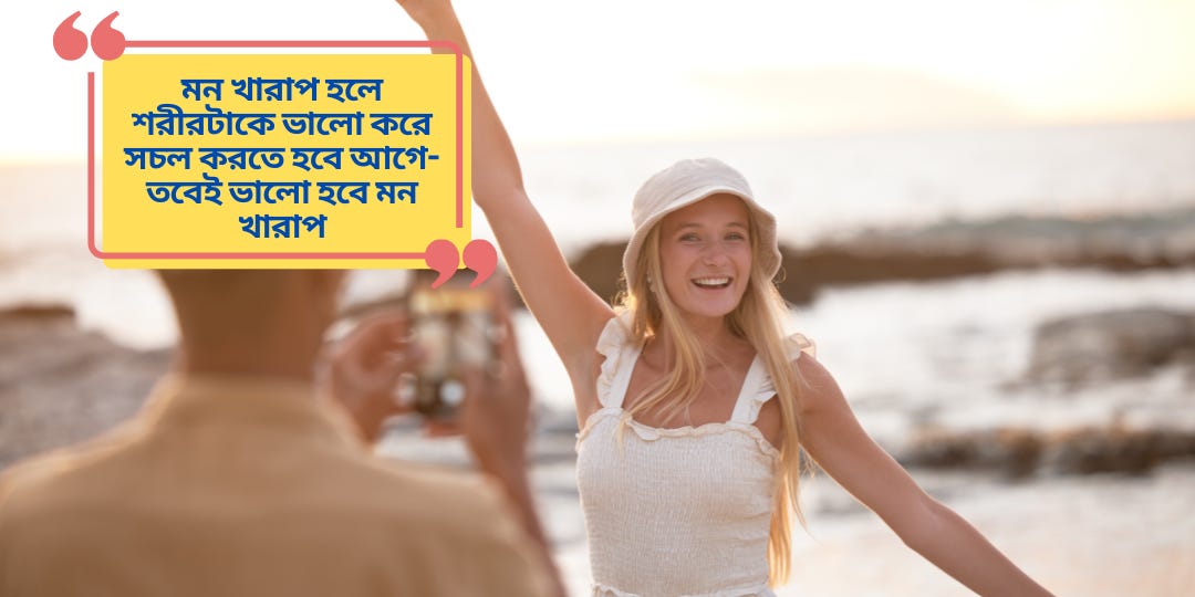 👉🏽 প্রচুর শারীরিক অসুস্থতার জন্ম হয় মন ভালো না থাকার জন্য। আর শরীরের রক্ষণাবেক্ষণ যথেষ্ট না হলে মন হয়ে যায় পঙ্গু।অর্থাৎ উল্টো দিক থেকে দেখতে গেলে মনের চিকিৎসা তখনই সম্ভব যখন শরীর ভালোভাবে মনকে সাপোর্ট করতে পারছে। আর শারীরিক চিকিৎসা তখনই সফল হবে যখন মানুষের মনটা ভালো থাকছে। তাই মন খারাপ হলে শরীরটাকে ভালো করে সচল করতে হবে আগে- তবেই ভালো হবে মন খারাপ। আর শরীর ভালো রাখতে গেলে মনের দিকেও দেখভাল দরকার।