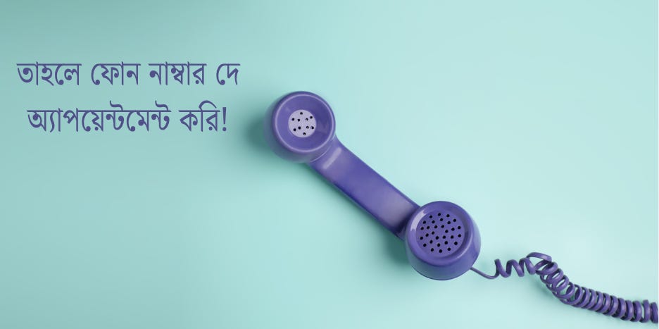 — আচ্ছা ঠিক আছে। তাহলে ফোন নাম্বার দে অ্যাপয়েন্টমেন্ট করি!