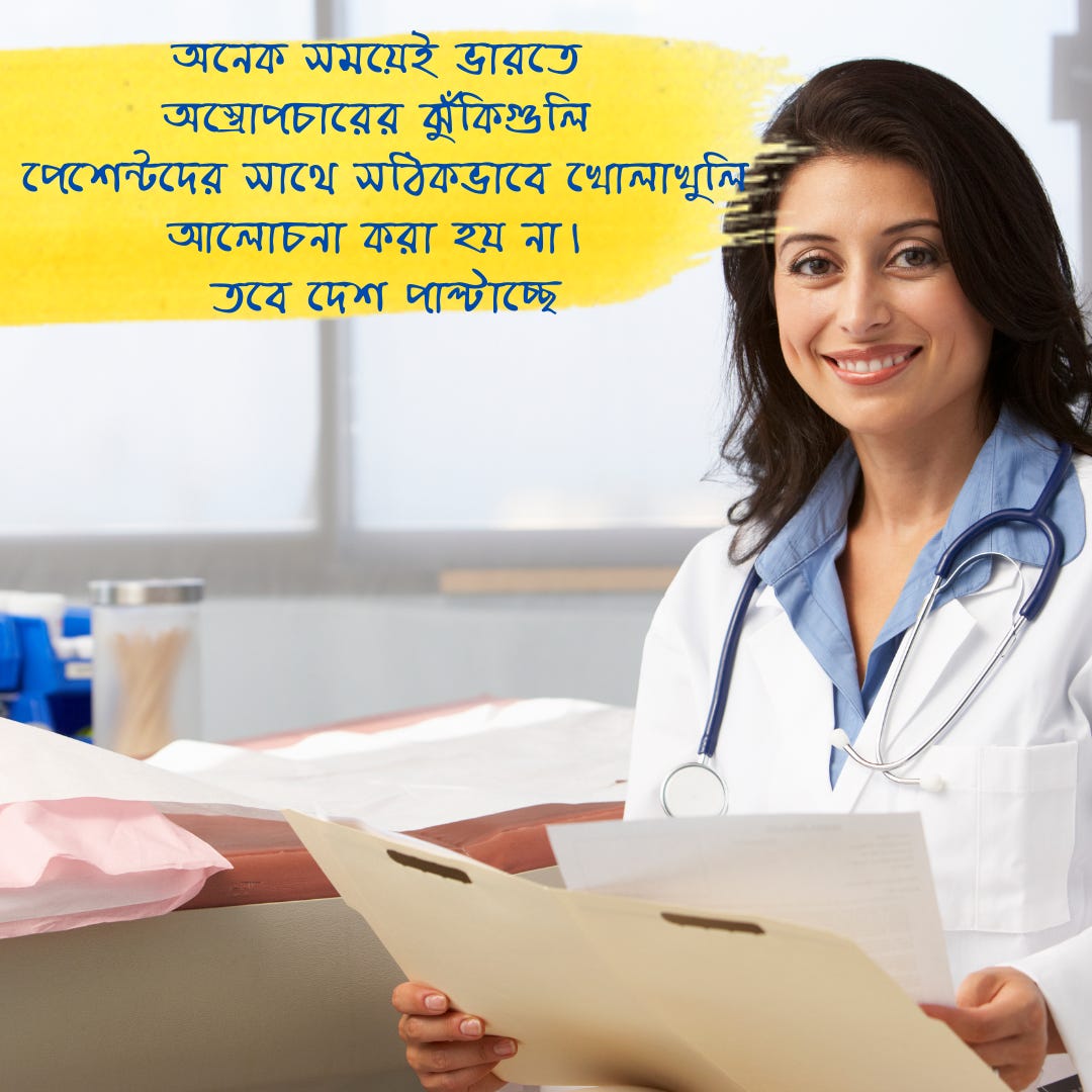 যেকোনো সার্জারিতেই কিছু না কিছু ঝুঁকি থাকে। যেমন রাস্তায় সাবধানে গাড়ি চালালেও ছোটখাটো দুর্ঘটনার ঝুঁকি পুরোপুরি এড়ানো যায় না, সার্জারির ক্ষেত্রেও তাই। আমাদের দেশে অনেক সময় ডাক্তাররা পেশেন্টকে ভয় না দেখানোর জন্য ঝুঁকির কথাগুলো এড়িয়ে যান। কিন্তু বিদেশে, যেমন ইংল্যান্ডে, ডাক্তার ও পেশেন্টের মধ্যে এ বিষয়ে খুব খোলামেলা আলোচনা হয়।