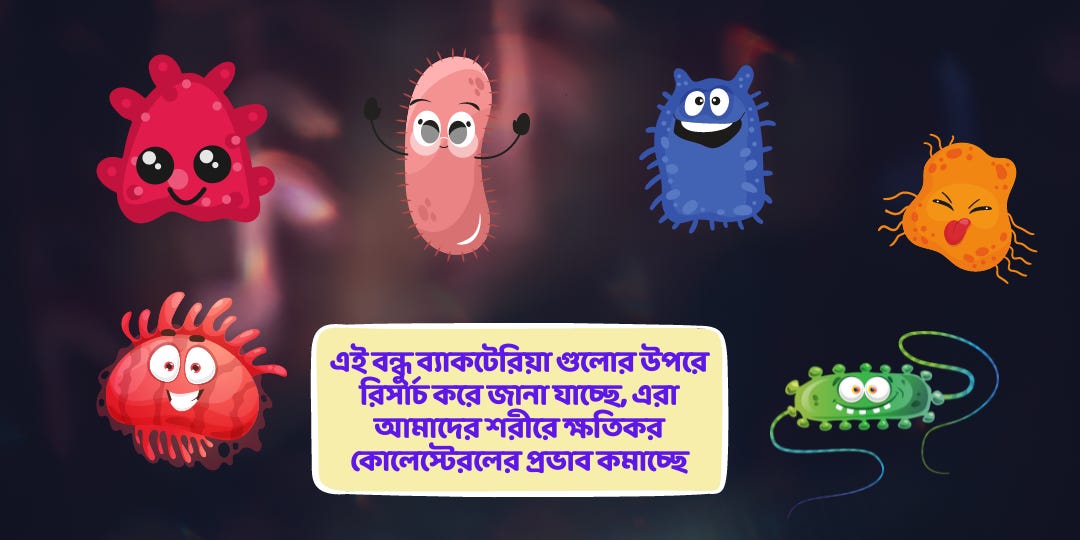 এই বন্ধু ব্যাকটেরিয়া গুলোর উপরে রিসার্চ করে জানা যাচ্ছে, এরা আমাদের শরীরে ক্ষতিকর কোলেস্টেরলের প্রভাব কমাচ্ছে শত্রু ব্যাকটেরিয়ার বাড়বাড়ন্ত হওয়ায় বাধা দিচ্ছে, ক্যালসিয়ামের লেভেল বাড়িয়ে আমাদের শরীরের হাড়কে রক্ষা করছে এমনকি ডায়াবেটিস এবং ক্যান্সার প্রতিরোধেও এদের জুড়ি নেই। এই বন্ধু ব্যাকটেরিয়া গুলোকে একসাথে বলা হয় পেটের মাইক্রোবায়োটা।