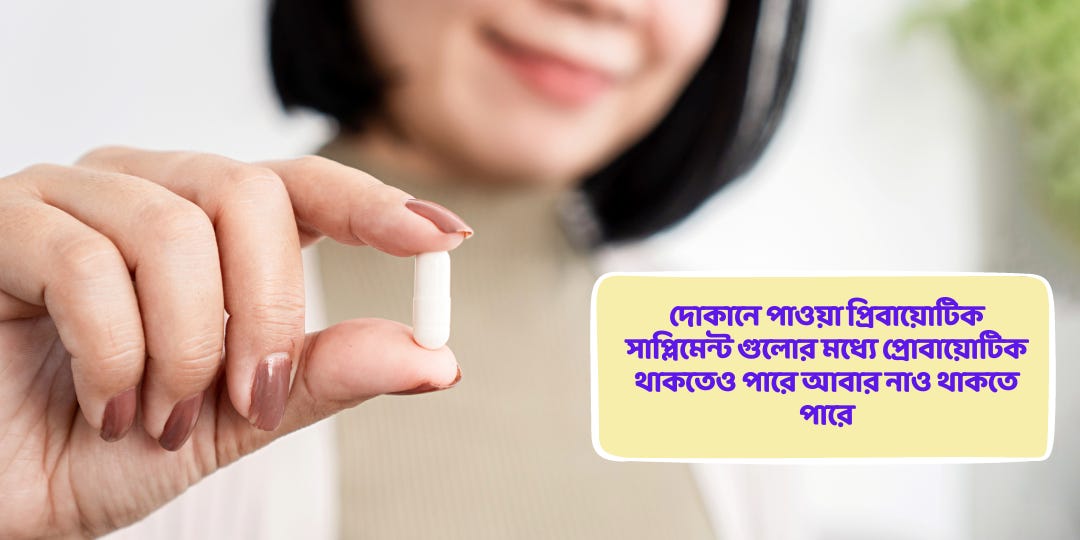এটি অত্যন্ত গুরুত্বপূর্ণ। কারণ প্রিবায়োটিক আসলে প্রোবায়োটিক জীবাণুর খাবার। এই প্রিবায়োটিক গুলো বেশ কিছু খাবারের মধ্যে থাকে এবং এরা পেটে বন্ধু জীবাণুর সংখ্যা বাড়ায়। দোকানে পাওয়া প্রিবায়োটিক সাপ্লিমেন্ট গুলোর মধ্যে প্রোবায়োটিক থাকতেও পারে আবার নাও থাকতে পারে।