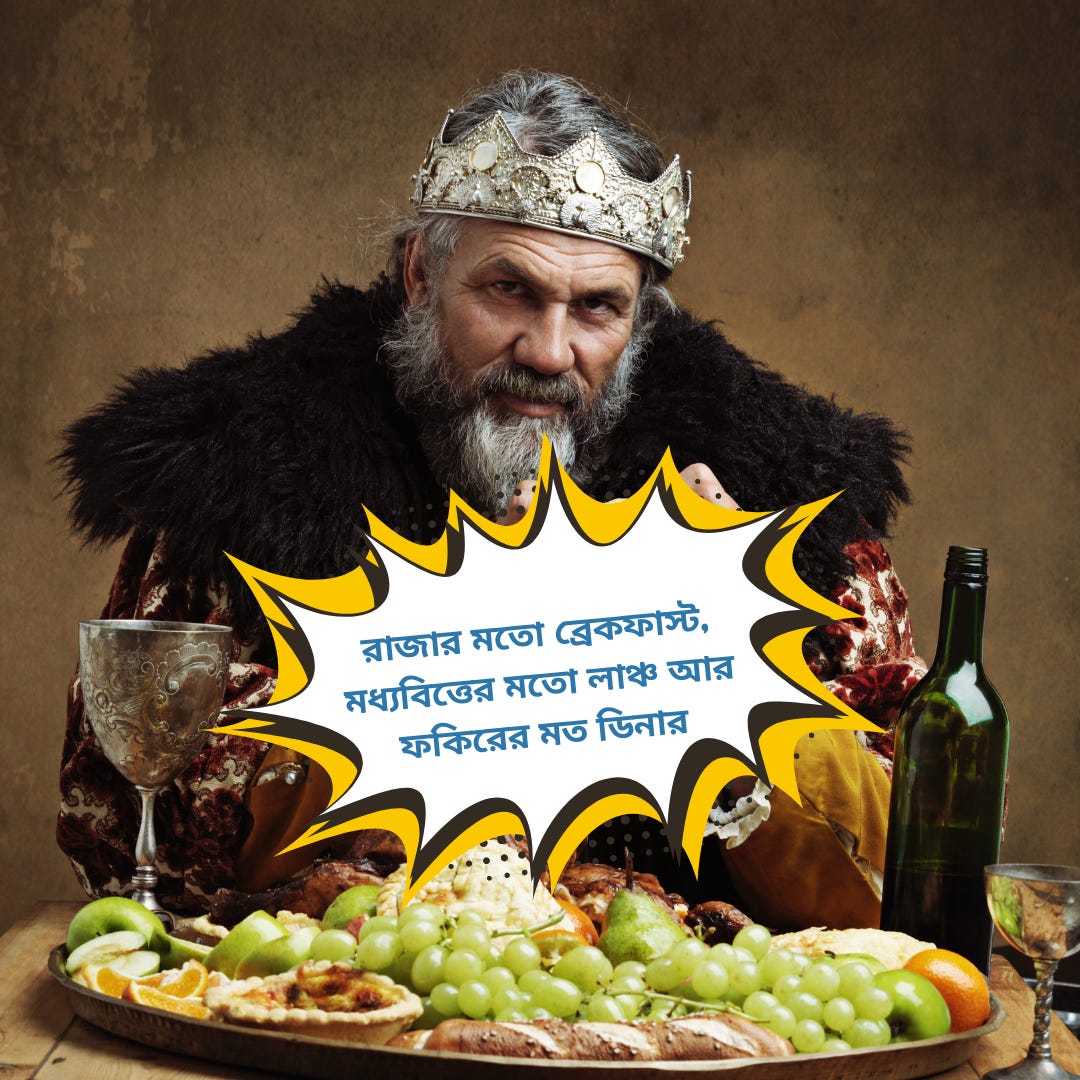 👉🏾 ব্রেকফাস্ট, লাঞ্চ আর ডিনারের সাথে চাই, তিনটে স্নাক্স খুব বেশি খিদেতে আমরা খেয়ে নিই দরকারের থেকে অনেক বেশি। আর ঠিক তারপরেই শরীর পরে ঝিমিয়ে। জীবনের যে কোন জিনিসের মত কখন কি খাবেন সেই ব্যাপারেও দরকার প্ল্যান। ব্রেকফাস্ট সবথেকে ভারী। ডিনার সব থেকে হালকা। বলতেই বলে রাজার মতো ব্রেকফাস্ট, মধ্যবিত্তের মতো লাঞ্চ আর ফকিরের মত ডিনার। খান যথেষ্ট জল।