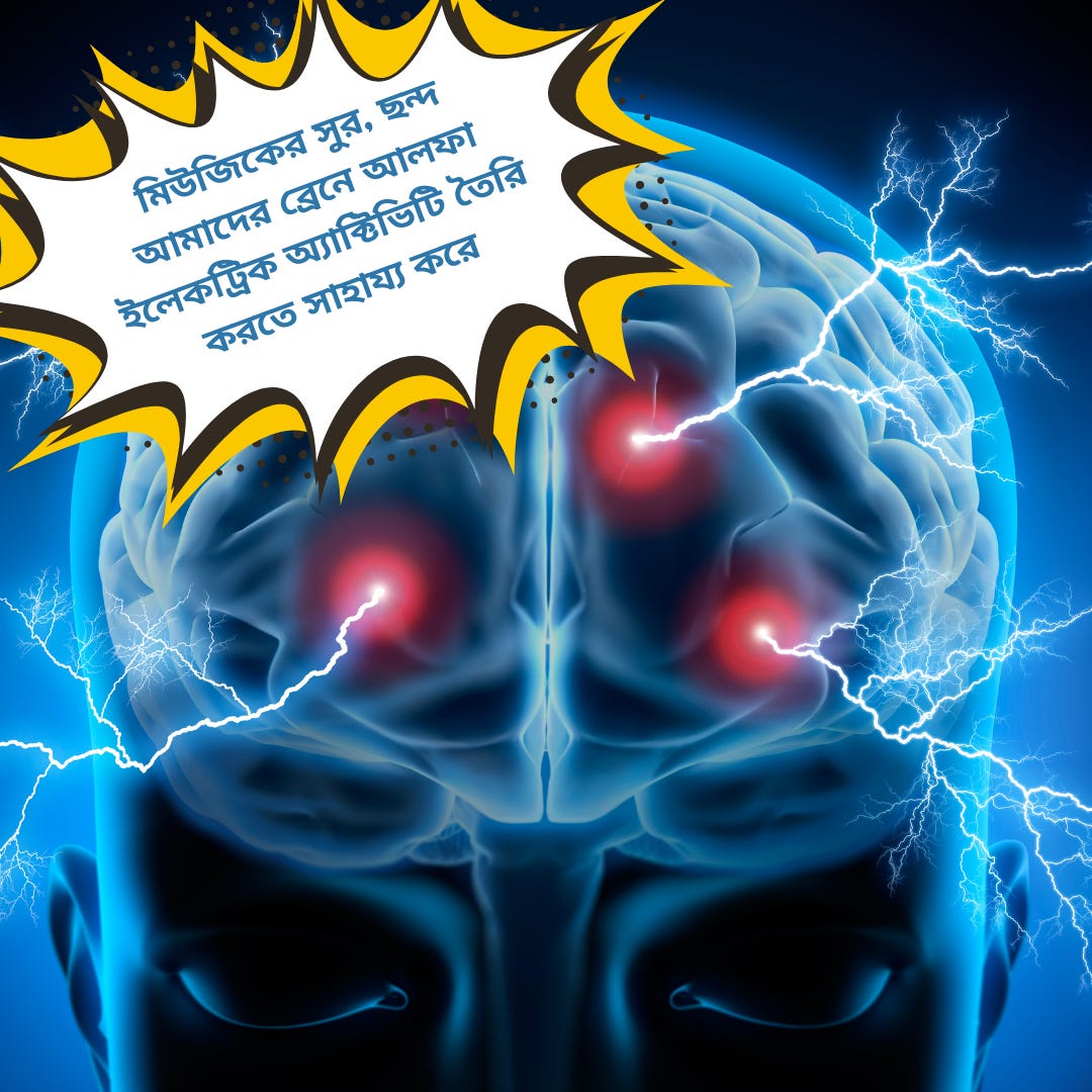 জার্মান ইউনিভার্সিটি অফ জিসেনে (University of Giessen of Germany) প্রকাশিত গবেষণায় প্রমাণ, ভালো মিউজিক আমাদের ব্যক্তিত্ব এবং এনার্জিকে প্রভাবিত করে। শান্ত করে আমাদের অ্যানজাইটি। মিউজিকের সুর, ছন্দ আমাদের ব্রেনে আলফা ইলেকট্রিক অ্যাক্টিভিটি তৈরি করতে সাহায্য করে।