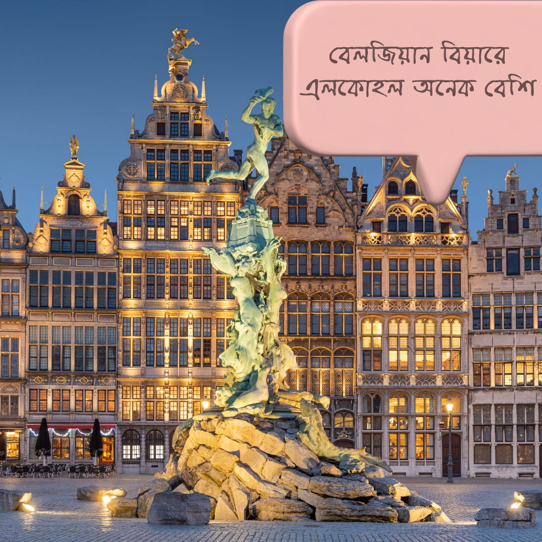 বেলজিয়ান বিয়ারে এলকোহলের পরিমাপ আবার গড়পড়তা বিয়ার থেকে তিন গুন বেশি।