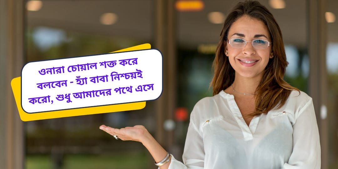 ওনারা চোয়াল শক্ত করে বলবেন - হ্যাঁ বাবা নিশ্চয়ই করো, শুধু আমাদের পথে এসে।