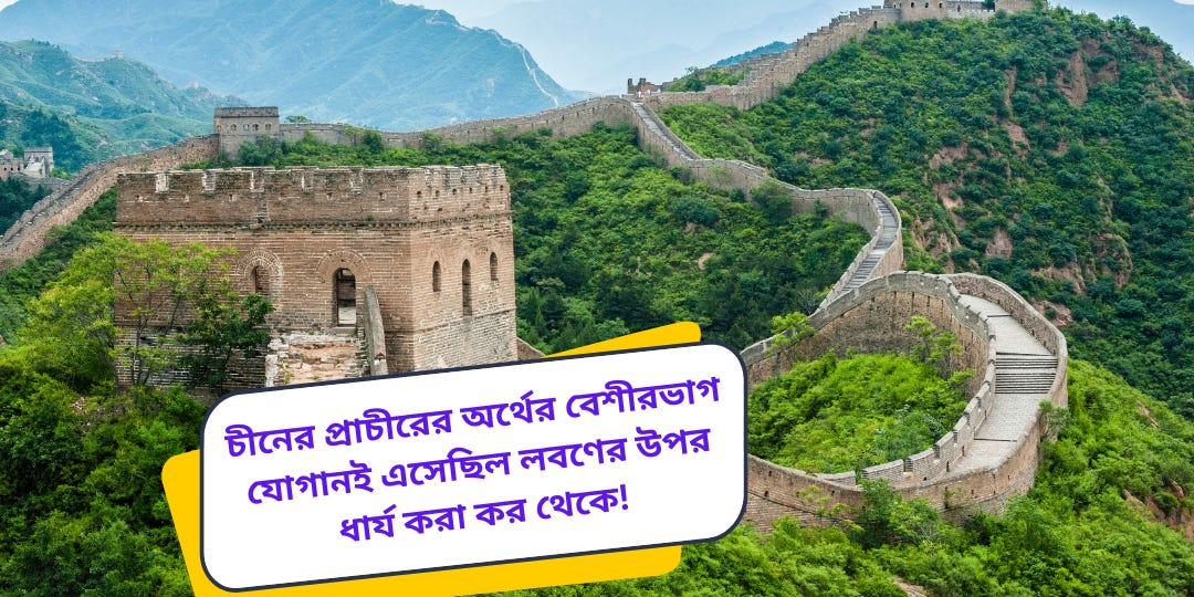 চীনের প্রাচীরের অর্থের বেশীরভাগ যোগানই এসেছিল লবণের উপর ধার্য করা কর থেকে!