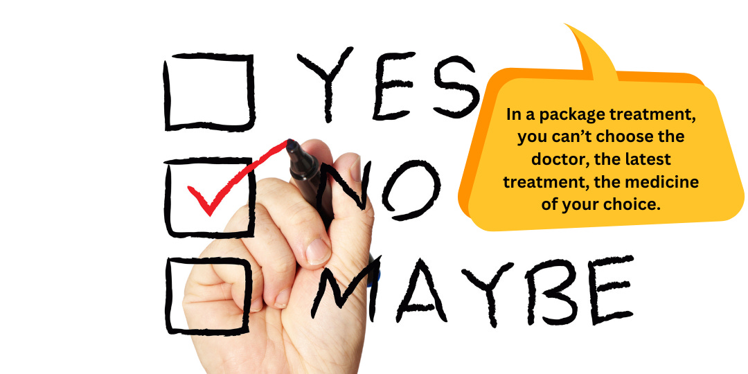 Do enough research when buying insurance. Go to the nearby hospitals and ask which company can settle a open insurance claim instead of pushing you inside the package.The premiums of such open insurance policies are high. But it pays off at the time of need. In a package treatment, you can’t choose the doctor, the latest treatment, the medicine of your choice. So invest in the right insurance at right time.