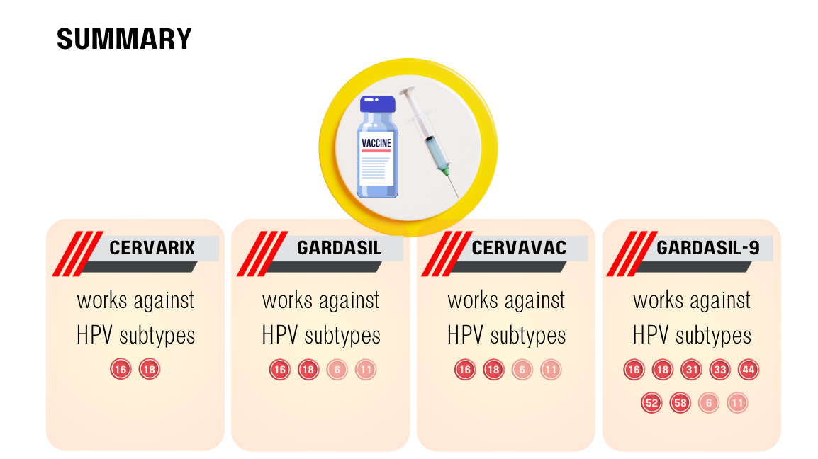 16 এবং 18 নম্বর HPV ভাইরাস যা সার্ভাইকাল ক্যান্সার তৈরি করে তার জন্য কভারেজ পাবেন সার্ভারিক্স,গার্ডাসিল এবং ভারতের নিজস্ব তৈরি সার্ভাভ্যাক- এ। আর ন ধরনের HPV ভাইরাসের প্রটেকশন পেতে হলে গার্ডাসিল-9