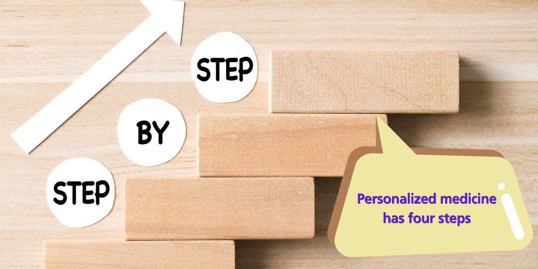 👉🏾 After the invention of the wheel, science probably did not make such a great revolutionary discovery. Personalized medicine has four steps, In English they are called the Four P's, NHS England, 2015