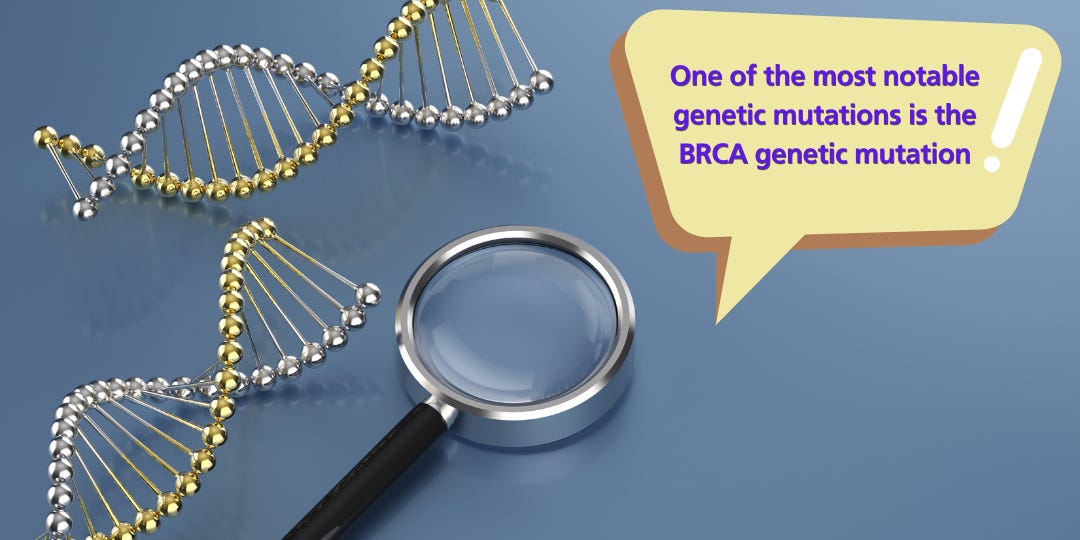 One of the most notable genetic mutations is the BRCA genetic mutation. A special mutation. If someone in the family has this mutation, every descendant will have that genetic mutation. This mutation causes cancer.