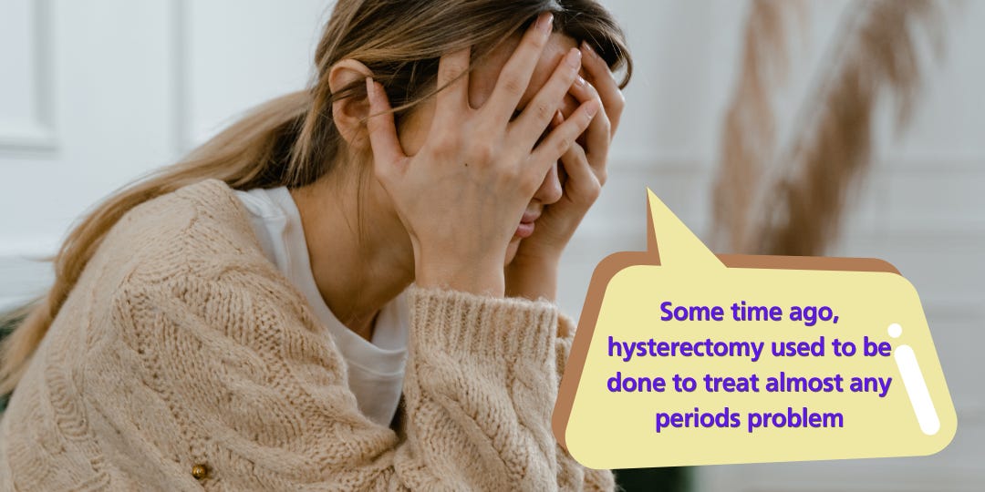 🩸 Some time ago, hysterectomy used to be done to treat almost any periods problem. Nowadays, women explore options such as hysteroscopy instead of undergoing major surgery. So that her problem is reduced, but she can avoid a major surgery.👉🏾 Nowadays, many women occupy important positions at various levels of society or at office. Many are so busy at work that if she takes a month off, her work may suffer a lot. So she may demand that her treatment options be considered separately.