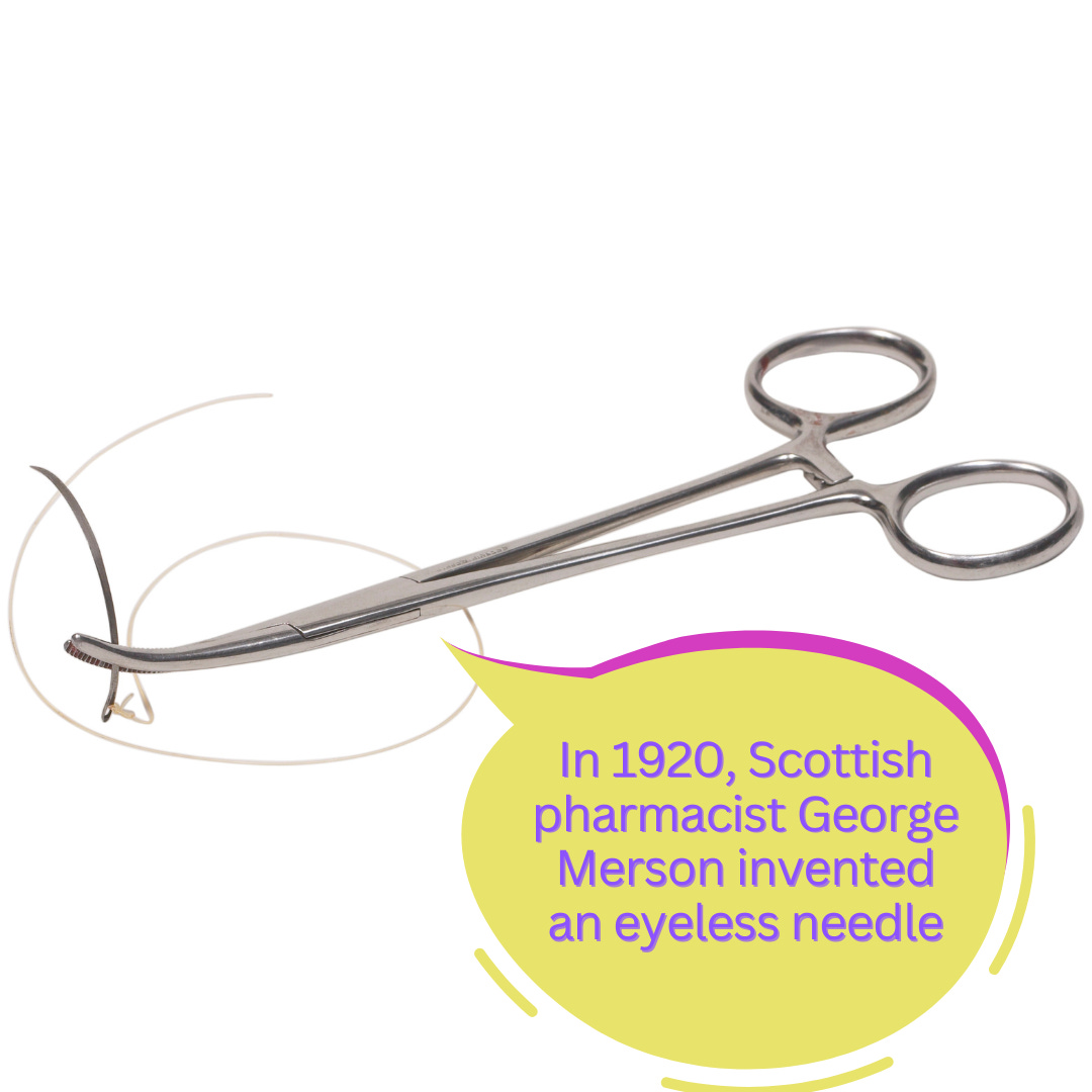 👉🏾 In 1920, Scottish pharmacist George Merson invented an eyeless needle. He attached the thread directly to the needle. There was no need to thread the needle. The size of the wound at every bite is reduced to bare minimum. The patients recovered even faster.