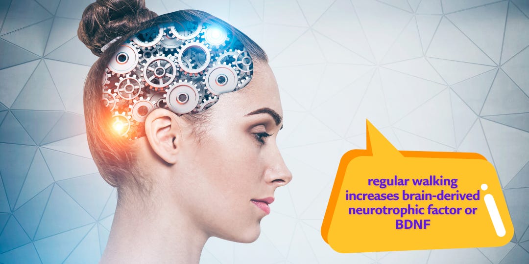 👉🏾 Research by Professor Hill of Illinois revealed that regular walking increases brain-derived neurotrophic factor or BDNF. (Hill & Polk, 2019) It improves memory.
