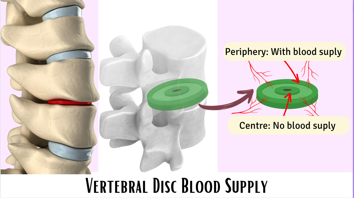 Between the 33 small bones in the spine, there is a jelly-type substance called cartilage, slightly larger than a carrom men. It is commonly known as disc.The sides of this disc have blood flow. But no blood reaches to its center. The this area waits for the nutrition. As only during walking and exercise it gets its food. In those few minutes of movement, nutrients and oxygen will flow from the periphery of the disc to the center of the disc.