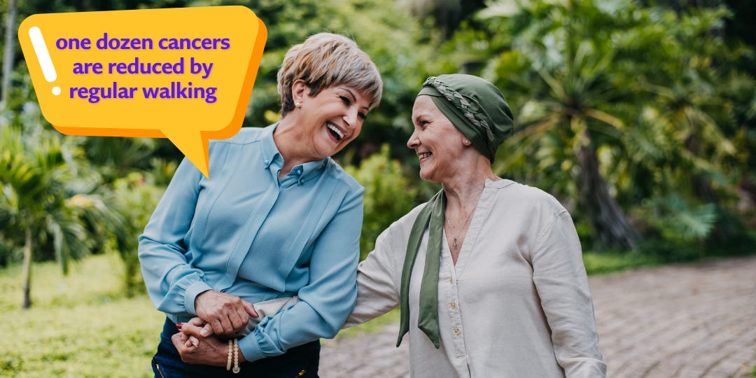 Research by Matthews and Moore in the 2020 Journal of Clinical Oncology shows that walking can reduce cancer risk (Matthews et al.,2020). That’s 3 cancers. Wait for more.