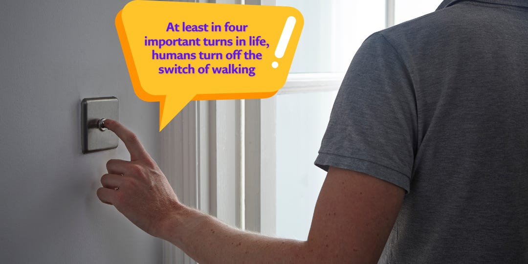 😥 Walking less -leads to less sleep, brittle bones, chest infection, constipation, various infections. We suffer from loneliness, loss of confidence, chance of cancers increases.👉🏾 At least in four important turns in life, humans turn off the switch of walking . Not willingly, though. It happens when they are most unaware. Have indomitable courage from childhood so that you can get through these times like a champion.