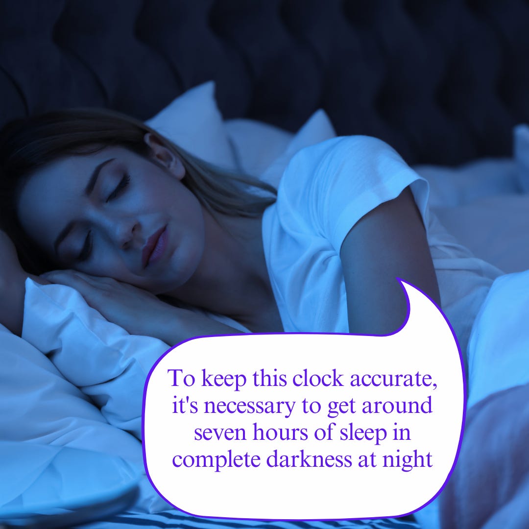 To keep this clock accurate, it's necessary to get around seven hours of sleep in complete darkness at night.